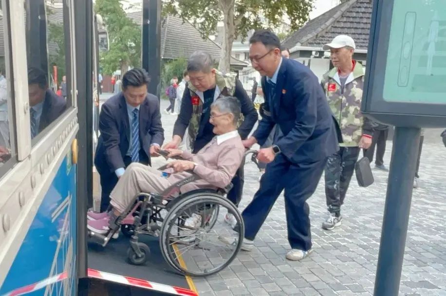 随后,在工作人员的精心协助下,老年人亲身体验了20路公交车配备的无障碍设施。这些精心设计的设施不仅体现了对老年人的尊重和真诚关怀,也给老年人带来了真正的出行便利和温暖。华阳路街道综合老中心92岁老党员谢奶奶说,这些人性化的设计大大提高了老年人每天出门的便利性,让她感受到了社会对老年人的细致关怀。