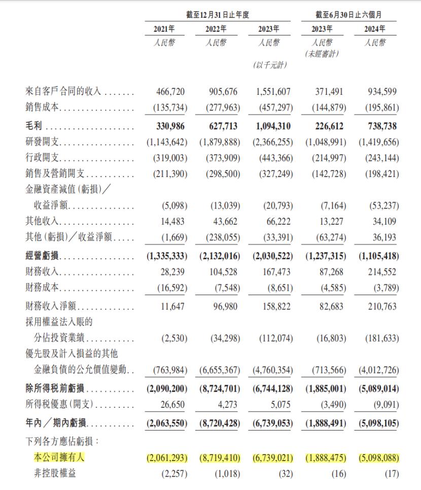 不过,地平线仍然处于严重的损失之中。在2021年至2024年上半年的三年半时间里,损失超过200亿元;仅从去年中到今年中期,损失就达到了100亿元。