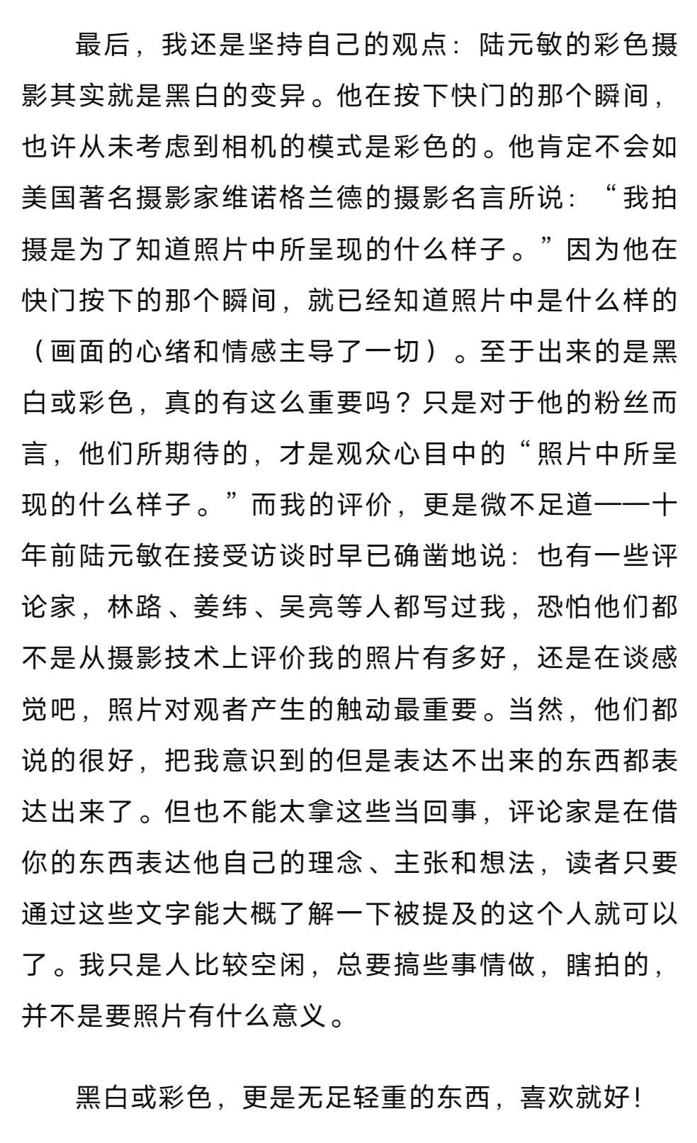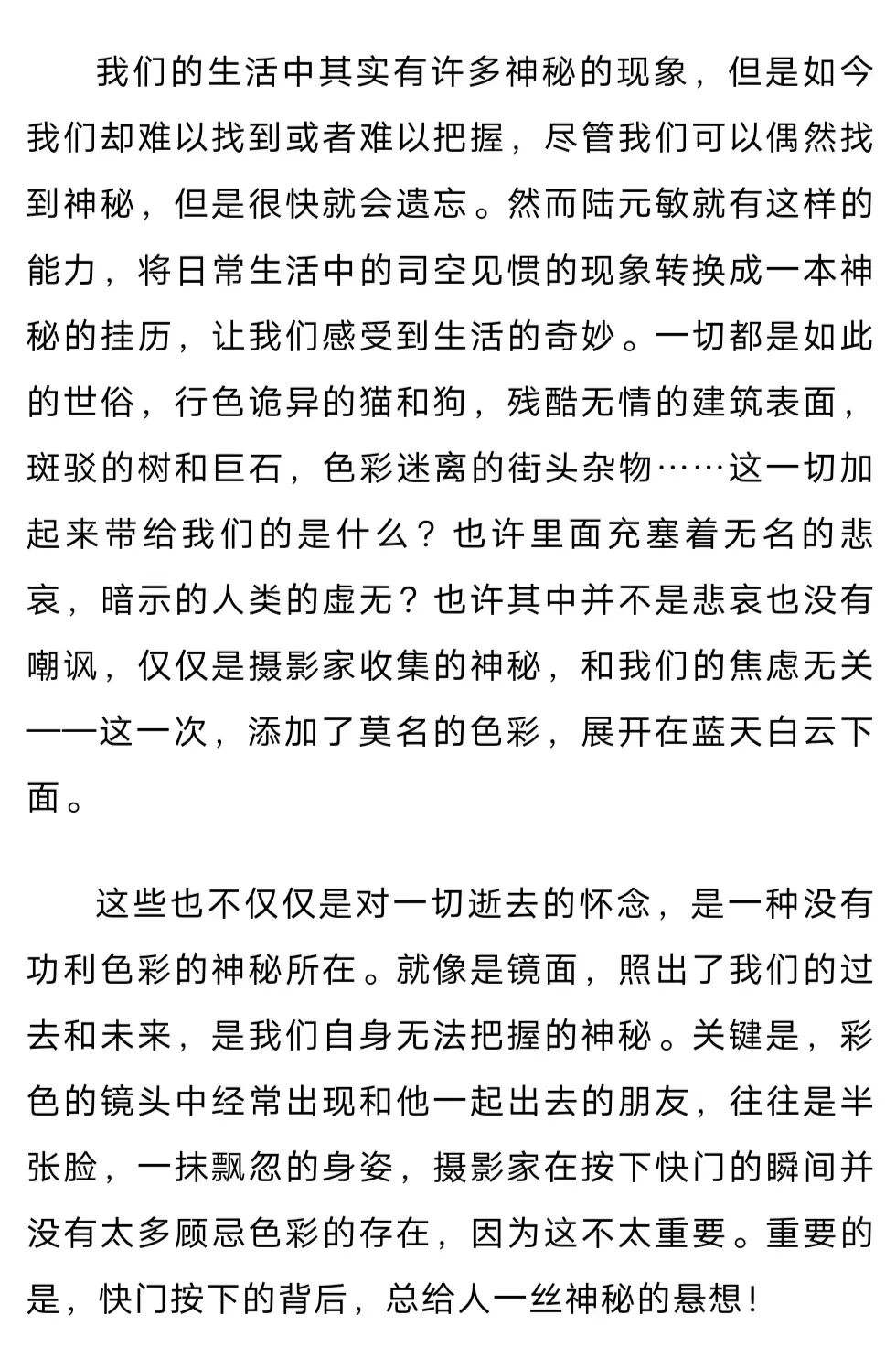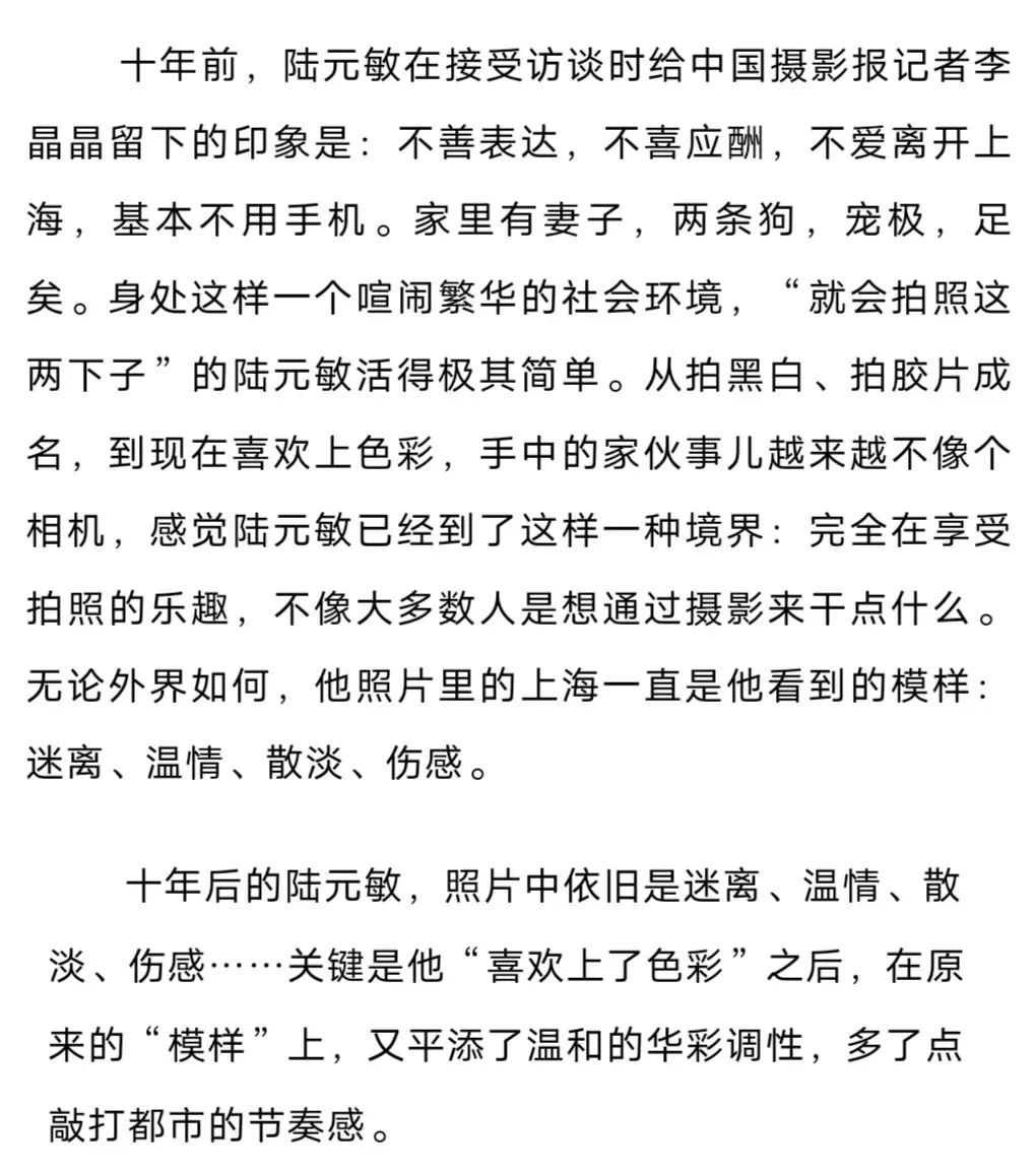 所以,玩彩色摄影的陆元敏和以前一味坚持黑白胶片的陆元敏有什么不同呢?好像没有!至少照片因为有色彩而看起来更好,普罗大众也许更喜欢。但过去崇拜他的粉丝可能会不满意——原来的黑白优雅变成了低俗的颜色?即使是你也会发现,有些彩色图片曝光是不允许的,通常是因为曝光过,颜色爆了,有点不“专业”。当然,陆元敏在曝光问题上从来没有“专业”过,但黑白画面迫使他遵循古典主义的原则,小心翼翼地控制自己的“专业”维度。一旦他开始使用彩色,他就可以肆无忌惮地自由——彩色摄影一直被认为是一个业余摄影行业,所以简单地“业余”一点不是更好吗?然而,“奇迹”就这样出现了——“业余”的颜色让陆元敏的现在更加神秘和谨慎。这背后可能隐藏着什么?