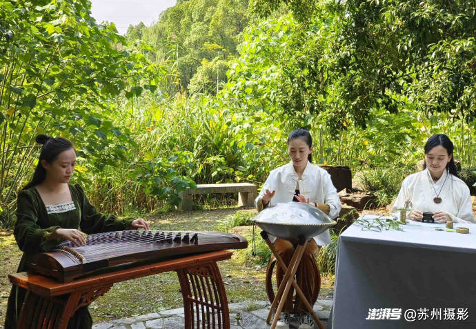 然后,中央音乐学院古筝高级认证讲师司芳玉女性古琴的深沉而悠远的声音传来。古琴作为中国最古老的弹拨乐器之一,承载着几千年的文化底蕴。司芳玉琴师轻轻拂过琴弦,古雅的音色像流水一样流淌,有时激情澎湃,有时婉转悠扬。桂花树下,古琴的声音与自然融为一体,让人陶醉其中,忘却世间的喧嚣与纷扰。