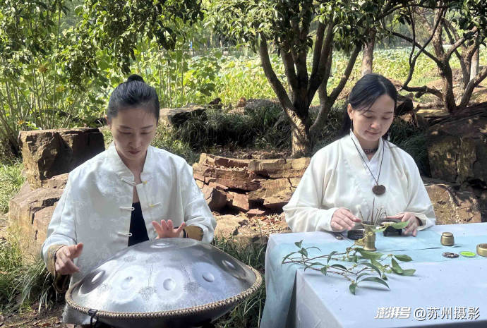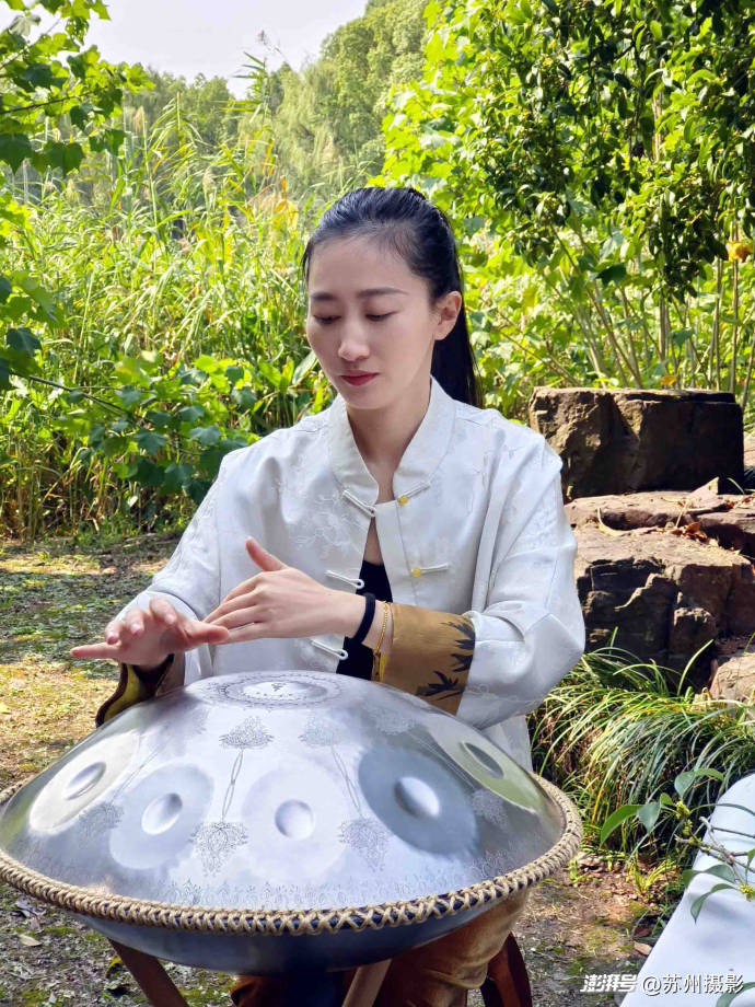 手碟,这种神秘而迷人的乐器,就像来自天堂的精灵。当它的声音来自手碟演奏家、颂钵冥想音疗师陈日环女士的手指时,空灵纯净的音色似乎可以带着每个人通过灵魂飞向遥远的天空。看见陈日环女人微微俯身,双手轻触手碟,那灵动的敲打就像星空中闪烁的星星,瞬间点亮了整个雅集的气氛。每次触摸都像是在唤起沉睡的音符,它们跳跃,飞舞,交织成一幅梦幻般的画轴。手碟的声音像微风一样轻盈,像清泉一样流淌,又像星星一样闪烁,给人一种超凡脱俗的感觉。那个声音似乎是山里潺潺的小溪,流淌在宁静的山谷里,给心灵带来一丝凉意;就像夜空中璀璨的星星,闪耀着神秘的光芒,推动着每个人走向无尽的遐想。在桂花的芬芳与古琴古筝的旋律交织中,手碟以其独特的魅力为这一集增添了一种奇妙的色彩,让人感觉置身于一个梦幻般的世界,忘记了时间的流逝和世界的苦恼。