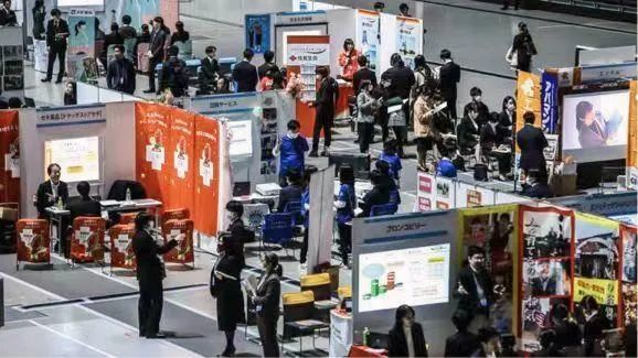 不仅在东京,在日本神奈川县横滨市西区展览中心的一次大型招聘会上,各大公司都派出了代表,用高语气说话,讲解公司的优势,呼吁在场的学生提交他们珍贵的简历。