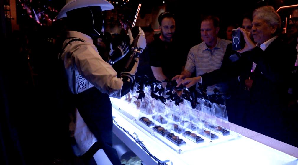 为了让人们感受到「未来已来」,特斯拉在华纳公司片场布置了 50 多辆 Robotaxi 供人们体验,搭配上 Optimus 机器人 Waiter 和调酒师,「西部世界」Party 的感觉相当让人上头。