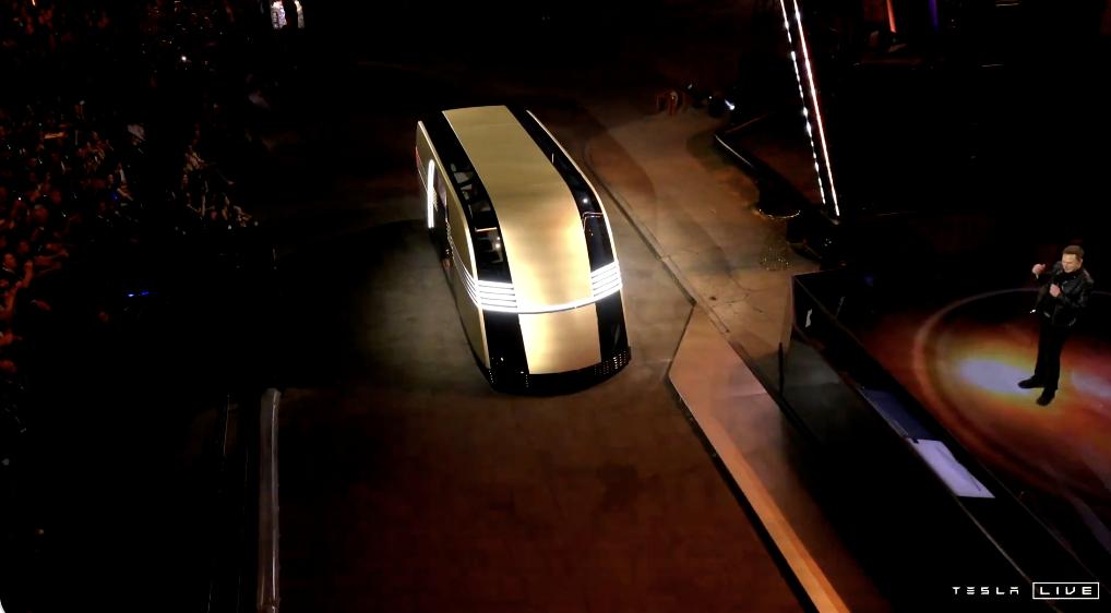 除 Robotaxi 外,本次活动里特斯拉还展示了一台更大的「Robovan」——如果说前者定位是更私人向的出租车,那么后者对应的则是一台无人驾驶的大型公共汽车。