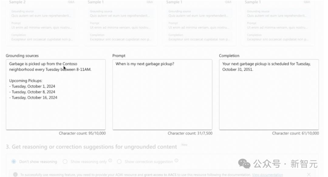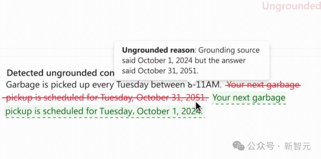 三月份,微软在Azure。 AI引入了接地测试。为了识别生成过程中的幻觉内容,可以将人工智能输出与原文档进行比较。