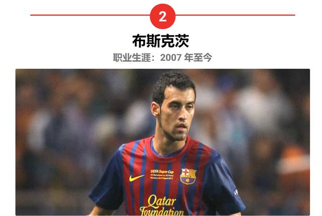 布斯克茨可能是这份名单上最不引人注目的球员。他和哈维、伊涅斯塔组成了巴萨中场三人组,虽然人们的注意力可能主要集中在他的两个更高级的队友和超级明星梅西身上。