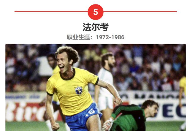 法尔考试(不要把它和哥伦比亚前峰拉达梅尔 · 法尔考搞混了)是的 70 年代和 80 世界上最好的中场球员之一也是巴西明星云集的成员。在巴西国际体育效力八年后,法尔考转会欧洲,加入意甲球队罗马,在最高水平的联赛中站稳脚跟,入选罗马俱乐部名人堂。
