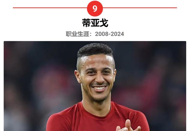 曾经是巴塞罗那中场王位的蒂亚戈继承人, 2013 拜仁慕尼黑在2008年转会,以寻求更多的比赛时间。这位西班牙球星的球技堪比这份榜单上最好的球员,但他的伤病记录,尤其是利物浦的伤病,迫使他在今年早些时候退役。 33 岁。
