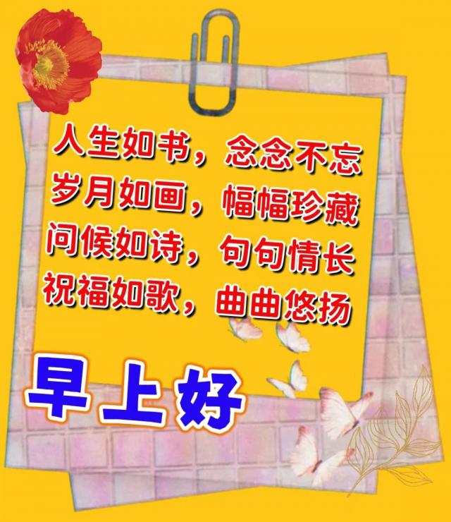 笑今天,享受明天,过好这一生的每一天;心态好,苦恼少,虽然年纪大了,但心不老;永远用童心看世界,日子越来越好!愿我们的生活像一首歌,内容精彩,旋律悠扬!无论你在哪个年龄,你都会过上最好的生活。忙的时候照顾好自己,快乐的时候享受生活!早上好运!