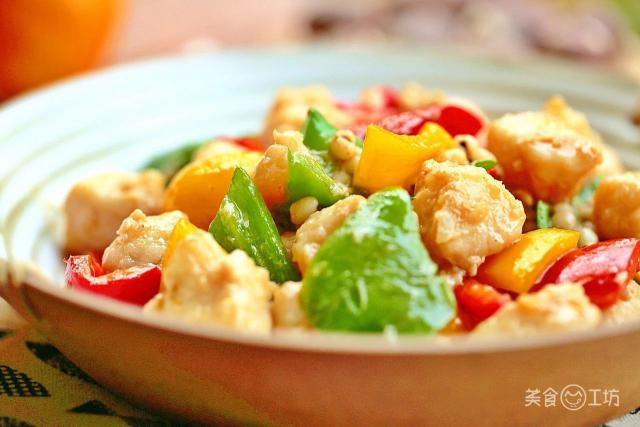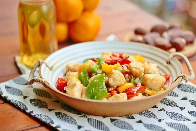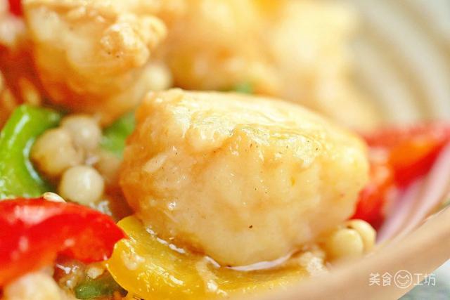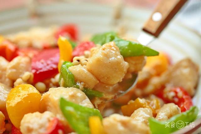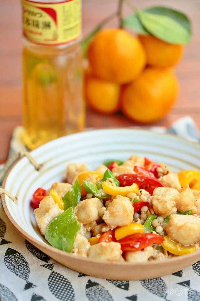 龙利鱼滑嫩无刺,薏米软烂香甜,配红、黄、绿三色青椒,吃起来很好吃!