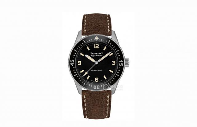 手表评价:宝珀50无疑是宝珀整个品牌的代表作品和传奇作品,但这款是宝珀50系列。 5100-1130-63A 这款手表算得上是近三年来唯一一款公价在11万元以下的51万元手表,这实际上足以证明它的价值。38 表径和毫米 10.8 毫米厚的表壳,促使这款手表在保证经典潜水表坚固耐用的同时,也适合日常佩戴。在黑色圆形表盘上,杆状时标与阿拉伯数字的结合,不但清晰易读,而且增添了优雅气质。深棕皮质表带与精刚表壳相辅相成,呈现出低调奢华的感觉。单向旋转缎面磨砂精刚表圈,镶嵌瓷器,装饰液态金属小时刻度。这种设计不仅提高了手表的视觉效果,而且为潜水时的记时提供了便利。采用了选择机芯的方法。 Cal.1153 自上链机芯,达到振频 21600 一小时的震荡频率,保证了时间的精确运行,在满弦状态下可以保证。 100 超长动力储备一小时。对日常生活中50岁的价格和优异的性能来说,能有一款价格在10万元左右的简直就是最具性价比的作品。