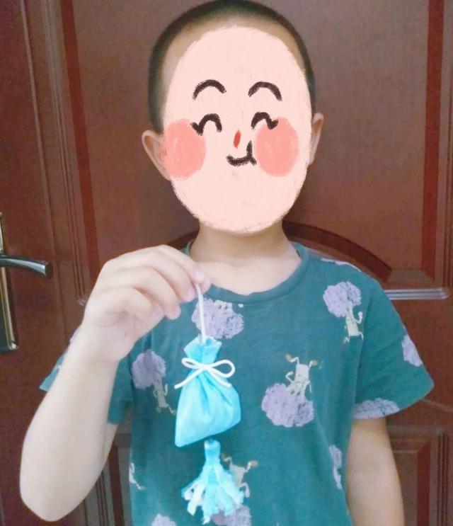 子恒小朋友的胸口总是挂着一个深蓝香囊,每个人都说这是他母亲的"秘方",所以纷纷求得。
