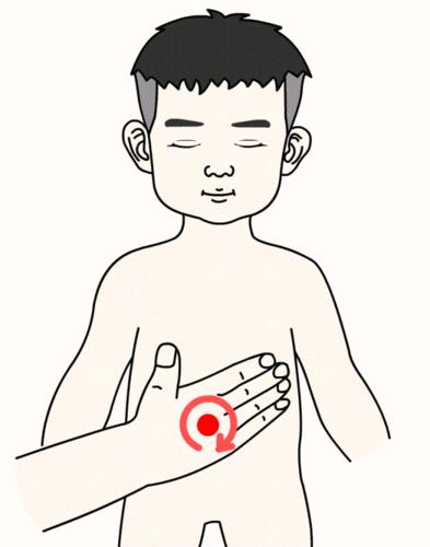 摩腹:父母可以用手掌粘贴在孩子的腹部,以肚脐为中心,顺时针轻轻摩擦,每一次, 5 ~10 分钟,每天 1~2 次。