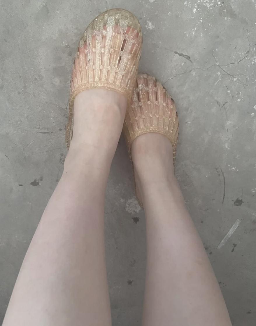 一些vintage爱好者也将水晶凉鞋视为不可或缺的时尚配饰。“当你穿复古连衣裙和休闲裤时,穿皮鞋或运动鞋会显得有点僵硬。水晶凉鞋有着千禧年限制的优雅气息,非常适合大多数古装。穿上它出门,至少不用担心出错。”