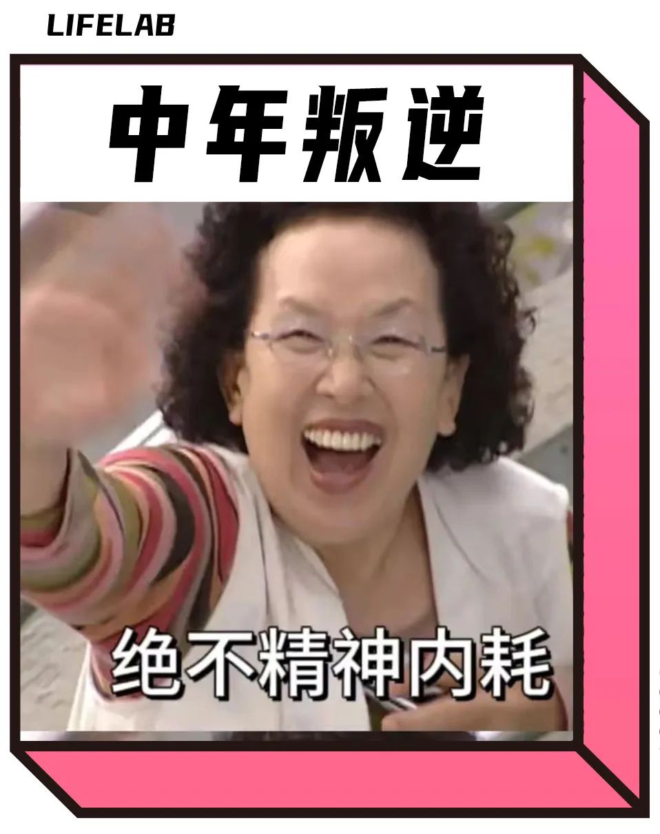 痞女大妈的出现极大地缓解了大家的焦虑。“他们让你知道,人到中年,可以比年轻时活得更好。你自然可以禁止别人对你‘大大小小的爹’,也不用为了取悦别人而在穿着或者化妆上卷起自己。展现出强大的生命力,射向世界,你就可以成为中年人的国王,年轻人心中的神。”
