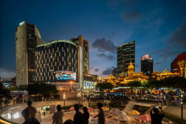 嘉地中心和上海报业大厦两栋建筑形态高大,建筑特色鲜明。本期项目根据自身的功能属性和建筑元素特点,精心雕刻,打造小范围区域代表性夜景。
