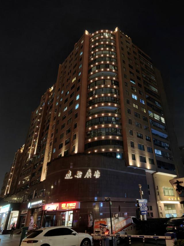 如果挺拔的办公楼像夜明珠,明亮地照亮了城市的夜空,住宅楼的灯光就像晚归留下的夜灯,温暖而优雅,看到灯光就像看到了家。