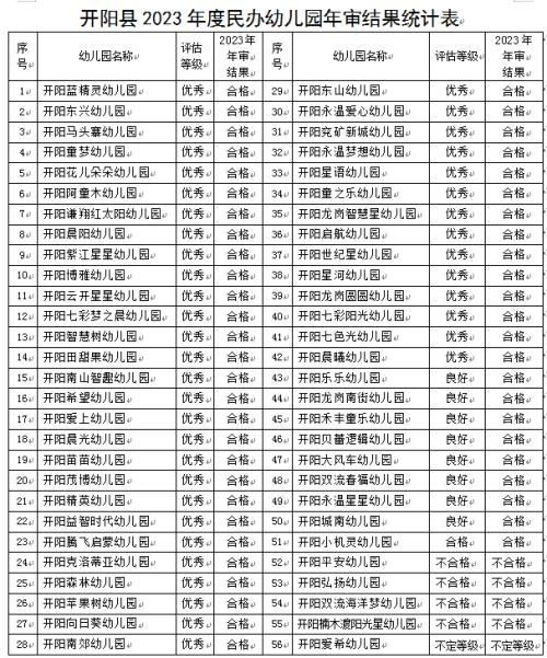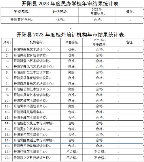开阳县教育局关于开阳县 2023 年度民办教育机构年检结果公示