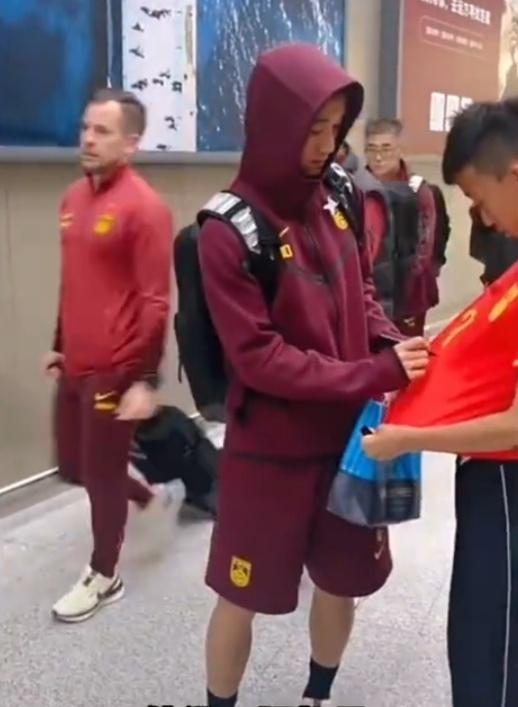 虽然国足表现不佳,但仍有大量球迷来到机场接机。伊万、王大雷等人与球迷挥手打招呼,而韦世豪、郑智则放慢脚步,为球迷签字。