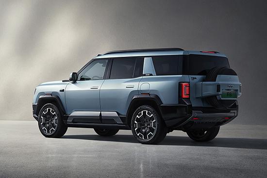 侧面采用方形设计,黑色轮眉和镀铬侧裙展现出十足的力量感。尾部采用插件备胎设计,黑色尾灯造型独特,点亮后识别度高。
