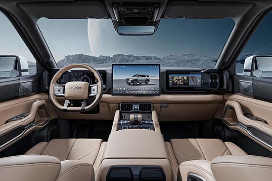 从外观上看,新车依然延续了方程豹家族化的“未来星舰美学”设计风格,多边形前格栅与两侧大灯相结合,层次感强。宽大的前围和银色的装饰板显示出它的硬核。 SUV 定位。
