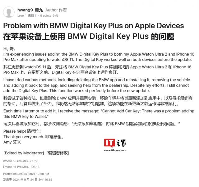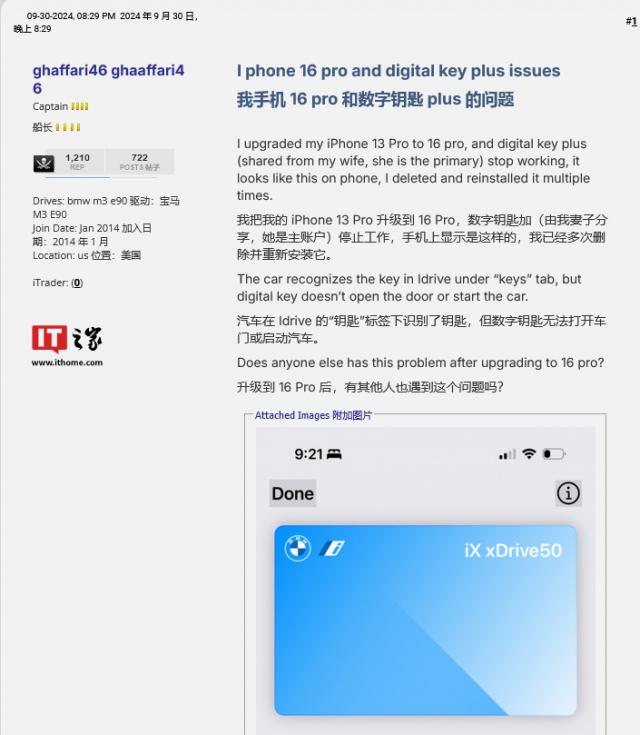 一些宝马车主的反馈上升到苹果 iOS 18 后来共享车钥匙有问题?
