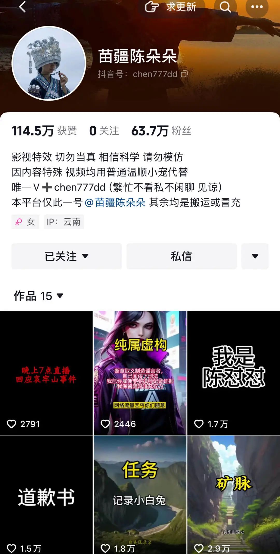 然而,“苗疆陈朵朵”在哀牢山露营的视频已经不见了,在发稿之前,抖音也无法获得“苗疆陈朵朵”的帐号。