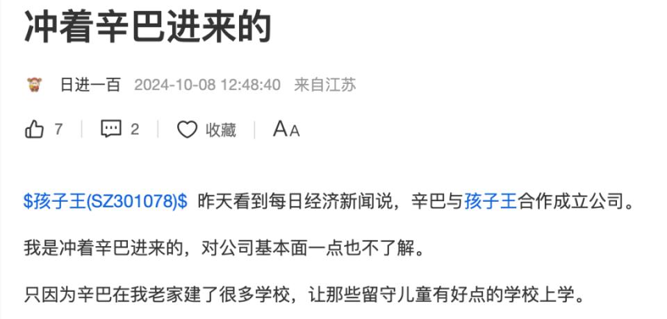 甚至还有辛巴的“粉丝”前来捧场,说:“我是冲着辛巴进来的,对公司的基本面一无所知。