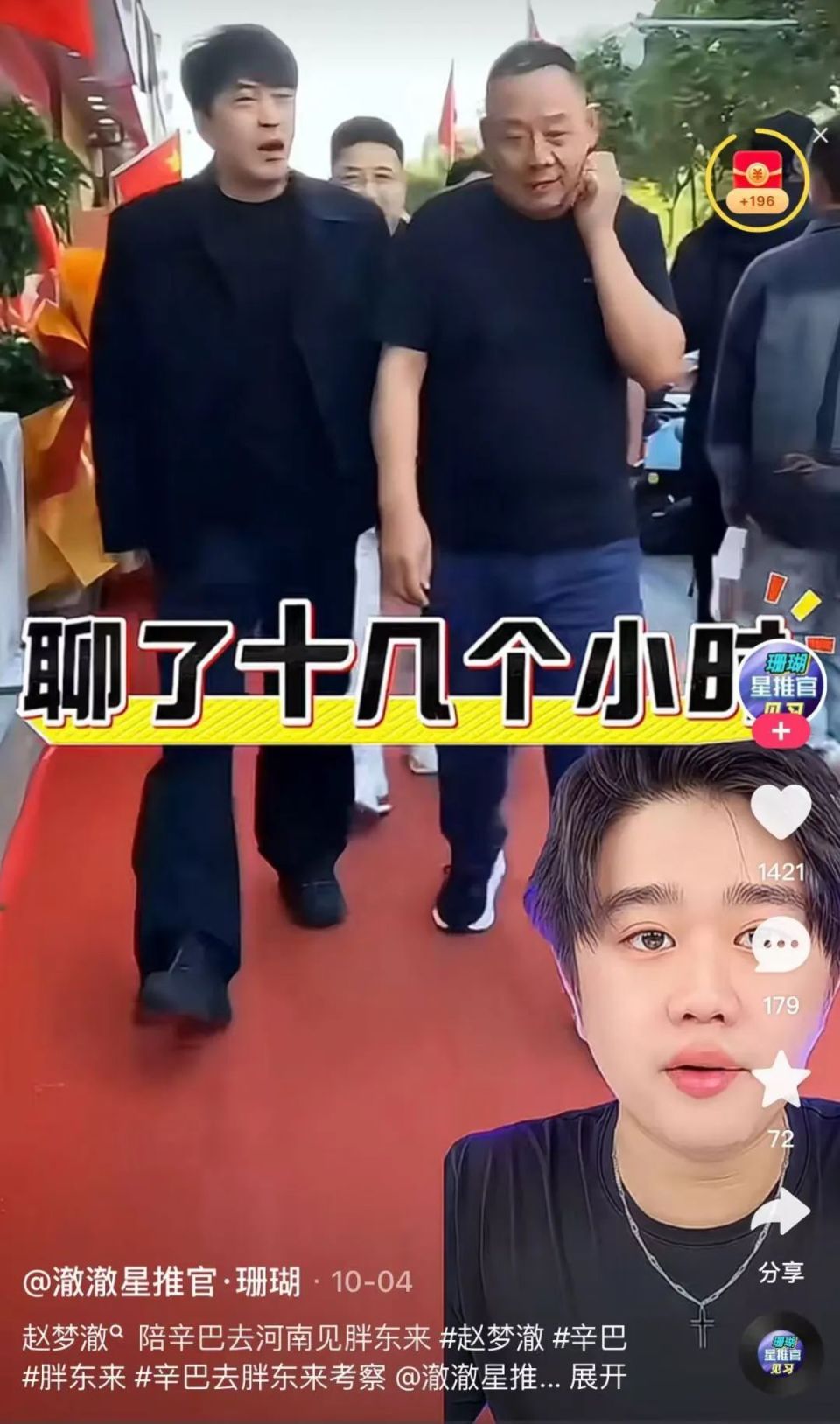 辛巴在直播间被封后并没有闲着。10月2日,他带领高管团队到许昌胖东来时代广场店进行考察学习。“大徒弟”赵梦澈在直播间说,辛巴和胖东来董事长于东来这次见面聊了十几个小时。在此期间,辛巴还强调,看到于东来是他今年最幸福的事情,他无法用金钱来衡量。使他更清楚辛选未来的道路。