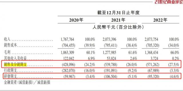 招股书显示,亿腾在 2020-2022 在此期间,销售和分销费用总额超过 15 R&D支出总额不超过1亿元。 3 不到前者的五分之一,亿元。