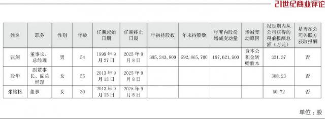 除了董事,目前股东大会的六名成员,排在张剑之后,都是段华和张格格。这对母女的任期,都是 2013 年到 2025 年。