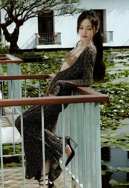 那时,吴宣仪穿着一件深色的衣服。 V 衣领,长发随意披散在背后,展现出精致的身材。她高挑的身材,精致的锁骨和香肩,纤细的腰身,一览无余。