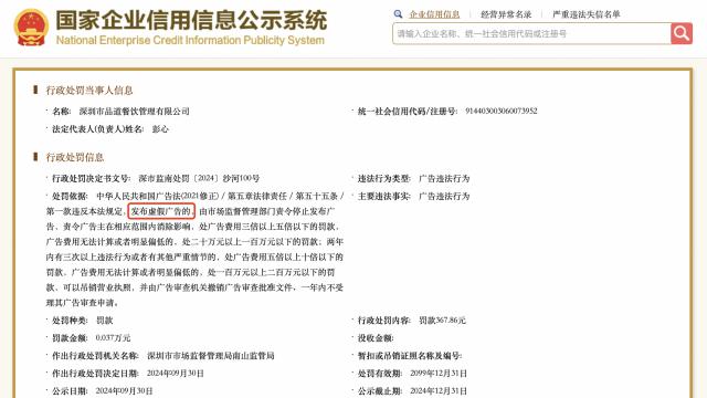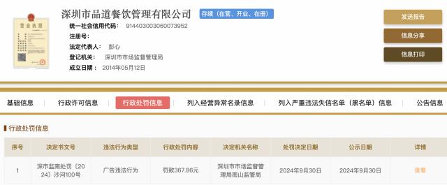 瑞财经 吴文婷 近日,奈雪茶叶公司深圳品道餐饮管理有限公司因虚假宣传被深圳市市场监督管理局南山监管局罚款 367.86 元。