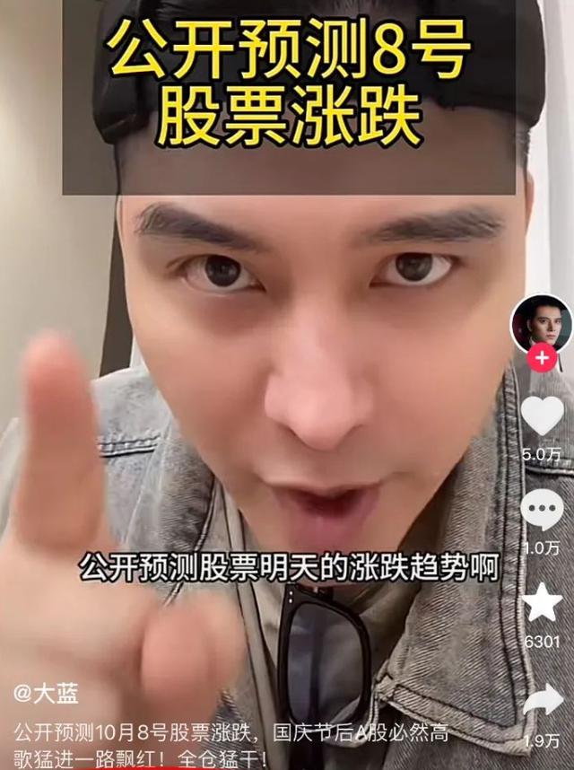 10 月 7 日本,大蓝发布了一段视频,称要公开预测。 8 股票的涨跌。录像中,大蓝直接发出豪言壮语,称自己如果预测错了,就直播吃屎,并让粉丝们“全仓猛干”。