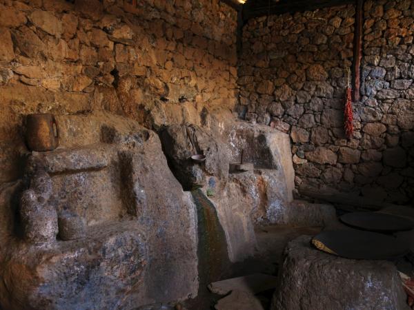 泉水从院子里的一个石缝和穴位流出。以此为起点,充分利用岩层,凿出石缸、石灶、石火塘,甚至造成桌子、凳子、床等家具...