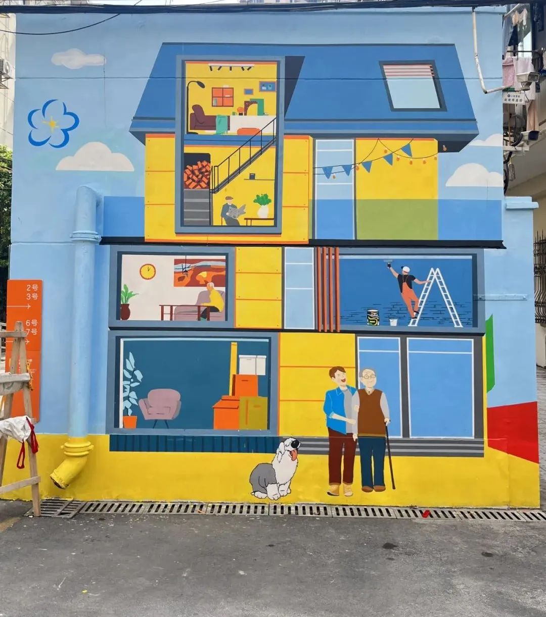 与老年认知障碍友好支持中心相对应的是汇东/泰东老年认知障碍友好社区。经过精心的设计和改造,它已经成为一个360º沉浸式老年认知障碍友好社区。显眼的科普墙和标志不仅美观大方,而且承载着“定向”、“警示”、“引导”和“联系方式”的重要功能,为居民提供了便捷的信息引导。
