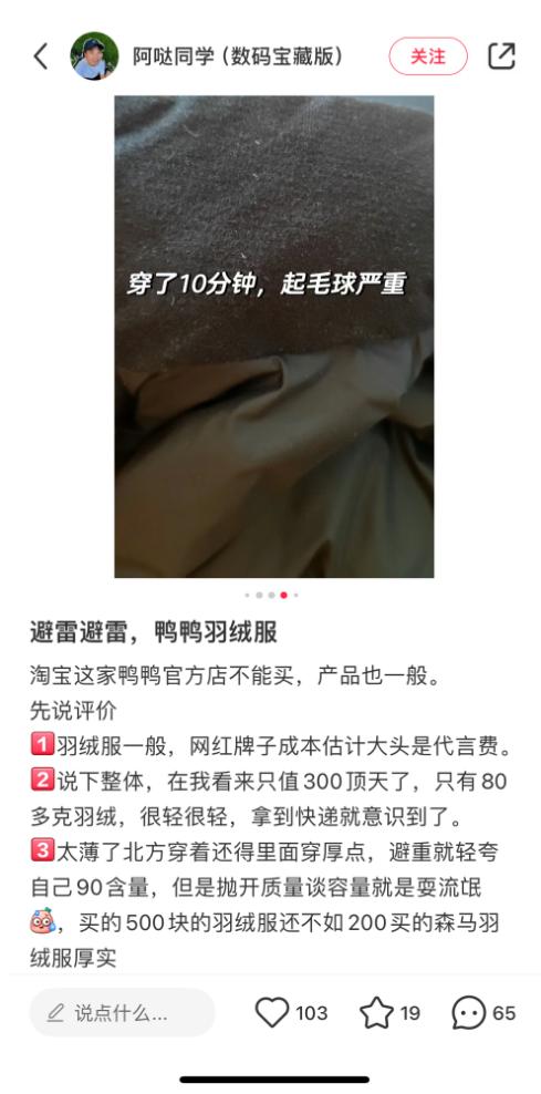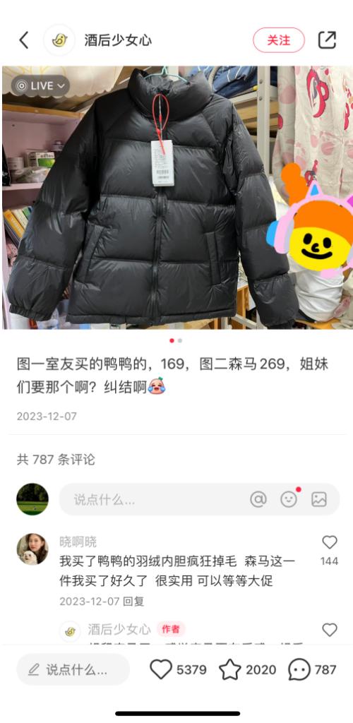 仅仅从外表来看,鸭鸭羽绒服看起来更具性价比,但出人意料的是,评论区一边倒,都建议博主直接选择森马。