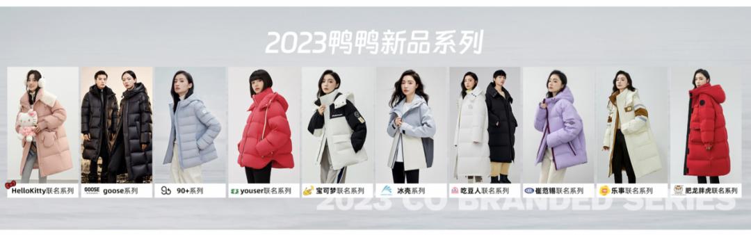 就设计与美学而言,鸭鸭羽绒服现有的多种产品与同类产品相似,被质疑是贴牌的情况时有发生。今后,鸭鸭可以通过与知名设计师或明星的合作,继续推出限量款或联名款,以增强品牌的时尚感和独特性。之前的赵露思同款、王一博同款、HelloKitty联名款等显然都取得了不错的销量,找到符合品牌形象的代言人或者找到“1” “1>2”的联名品牌,也是品牌出圈的好主意之一。