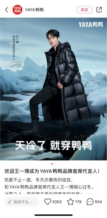 与此同时,鸭子和鸭子也逐渐加强了对年轻消费者的吸引力。2023年,鸭鸭宣布王一博是品牌代言人。通过名人效应和直播间的强势营销,品牌成功打开了年轻人的口碑。