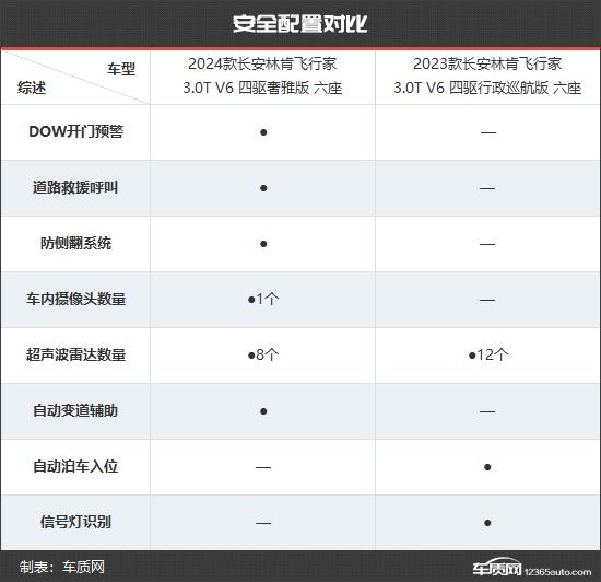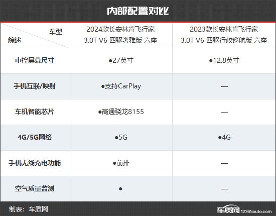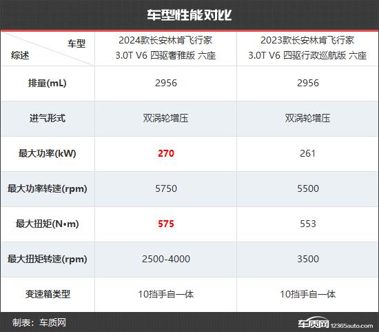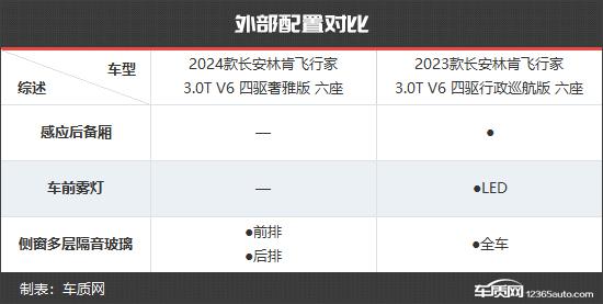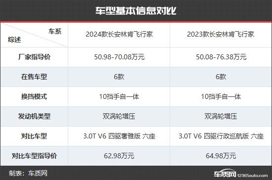 2024 长安林肯飞行家共推出 6 与老款车型相比,顶配车型的价格有所下降,入门级车型的价格略有上涨。为直观对比,我们选择 2024 长安林肯飞行家 3.0T V6 四驱奢雅版 六座(以下简称:新飞行家)和 2023 长安林肯飞行家 3.0T V6 四驱巡航版 为了更直观地看到新老车型在配置上的具体变化,六座(以下简称:旧飞行家)进行对比。
