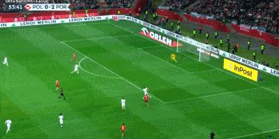 后半场,C 罗又有了一次出色的破门机会。 54 葡萄牙队在几分钟的右路进攻,C 罗在左边。看见队友在右边的路上前进,C 罗立即高速前插。只是使用了 3 他大概在几秒钟内跑了 30 米饭,速度吓人。在这一过程中,他完成了前后卫的超车。