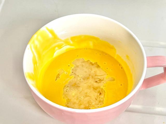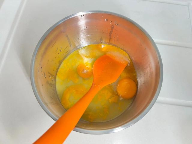 2.3 蛋黄分离,蛋黄加 45 克糖和 15 将克柠檬汁搅拌至糖融化备用;