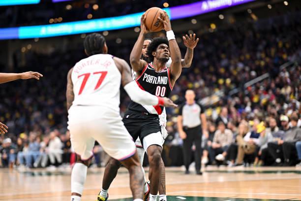 在这场比赛中,开拓者首先给后场的新星斯库特 - 亨德森(Scoot Henderson)表现堪称灾难。整个比赛都是亨德森 30 分 05 秒,投球 16 中 4,三分线外 6 中 1,罚球 6 中 4,获得了 13 分 4 篮板 3 助攻数据,以及 7 次失误和 3 次犯规。正负值为 0。在进攻端,亨德森的效率已经可以用离谱来形容,他的投球选择非常不合理,而且他的投射能力也不太稳定。更重要的是,亨德森还送出了辣眼睛。 7 第二次失误,他不断地发出球权,导致球队在进攻端不断地处于失势状态。此外,亨德森在防守方面也没有什么突出的贡献,他缺乏身材也导致他无法在这方面为球队提供更多的帮助。毫不夸张地说,在亨德森的比赛中打出如此糟糕的表现并不容易,这已经是历史级别的灾难表现了。