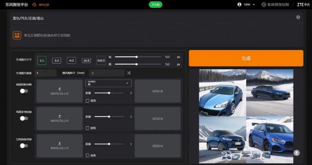 中兴通讯基于东风汽车提供的优质汽车图片语料材料,进行了深度学习和培训。该应用支持多种设计类型的选项,如线稿、风格和空间关系,用户可以定制和优化个性。