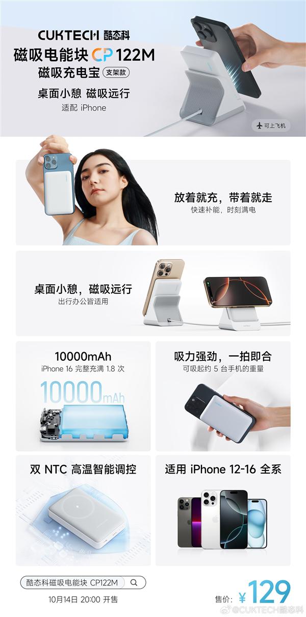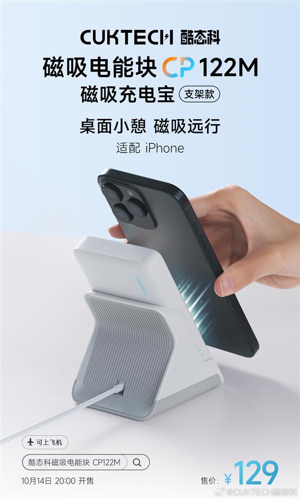 129元!CP122M发布酷态科磁性充电宝支架:充电宝,座充二合一
