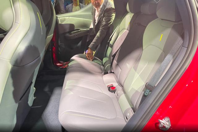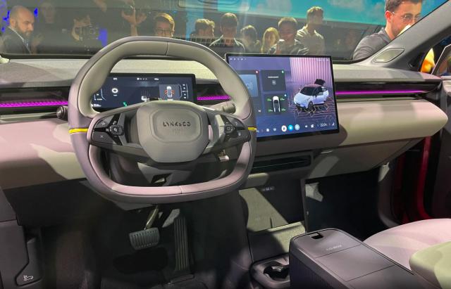 在内饰方面,提供双辐多功能方向盘、液晶仪表和悬浮式中控面板,预计将选择 LYNK Flyme Auto 汽车系统。中央岛台采用分层结构,分别为杯架、储物格和扶手,另外座椅旁边还配有充电插座和手机储物槽。