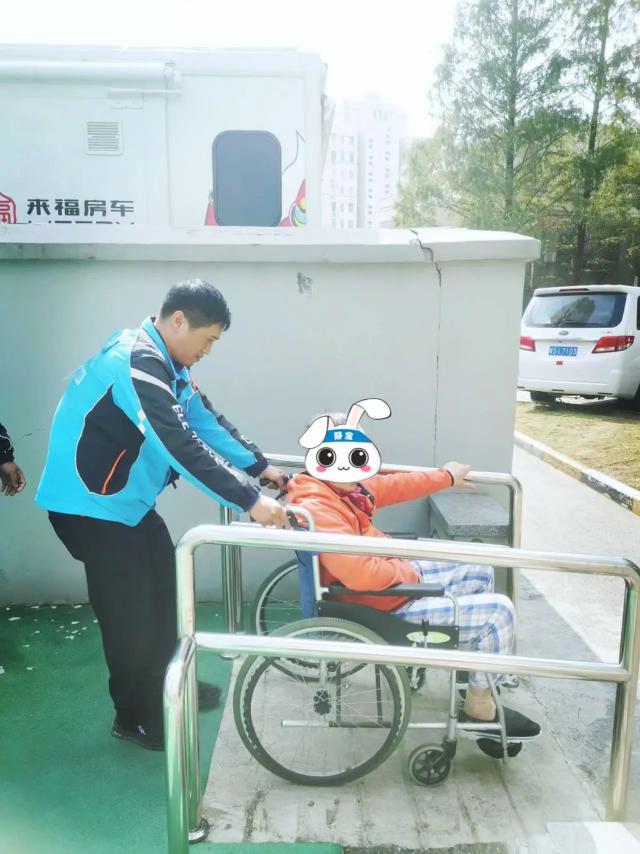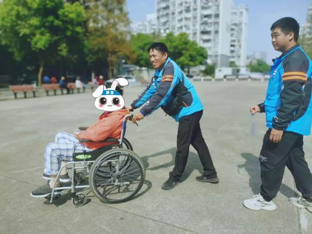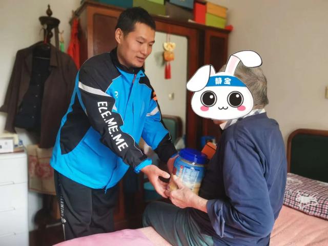 大宁路大润发店饿了么快递站快递小哥冯运通小心翼翼地将大宁路大润发店 667 长时间坐轮椅的老人徐阿姨推到小区的中心花园,和她聊天,这让徐阿姨觉得很贴心。