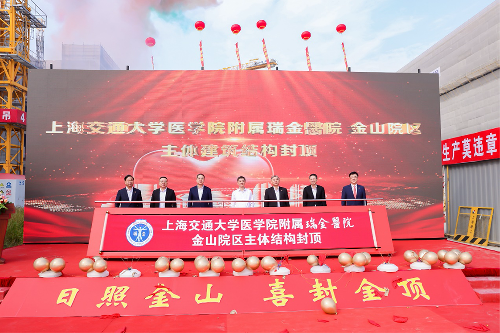 上海瑞金医院金山院区主体建筑结构成功封顶,后年投入使用。