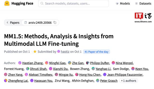 IT 世家 10 月 13 每日消息,苹果公司现已为其多模式大模式。 MM 推出 1.5 版本,这个版本模型是基于上一代的。 MM1 在不同的训练周期中,重点研究混合不同类型数据对模型性能的影响,继续延续数据驱动的训练原则。