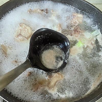 2、水开后撇去浮末,继续煮沸。 2 用温水清洗,分分钟捞出。